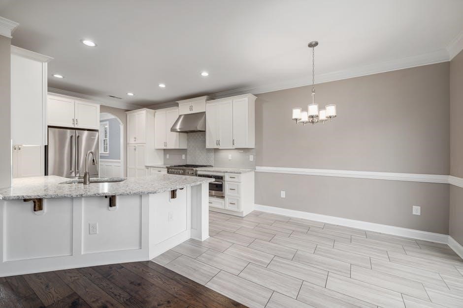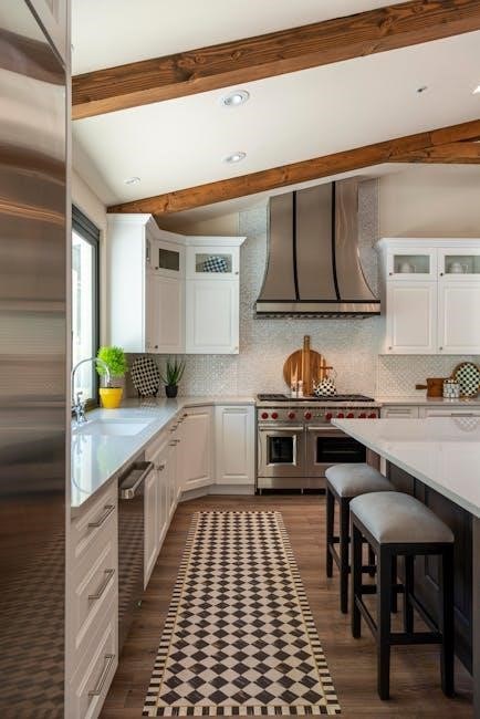 PDF plans often specify material quantities and costs, aiding in budget planning. Consider the overall kitchen style when selecting materials to ensure a cohesive design.