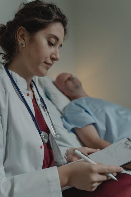 PDF guides emphasize systematic auscultation, instructing nurses to listen for variations in pitch, intensity, and duration. Documentation should clearly describe any abnormal findings, including their location and timing within the respiratory cycle. Resources often link specific sounds to underlying pathologies, aiding accurate assessment and care planning.