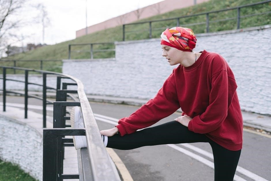 Arm circles are a simple yet effective dynamic stretch often included in a comprehensive stretching routine for runners PDF․ They prepare the shoulder muscles and upper back for the natural arm swing during running, promoting efficient form and preventing stiffness․